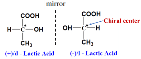 - Chiral Center: Most commonly, they have a carbon atom bonded to four different groups. This is often called a stereocenter. e.g. Lactic acid (2-hydroxypropionic acid)