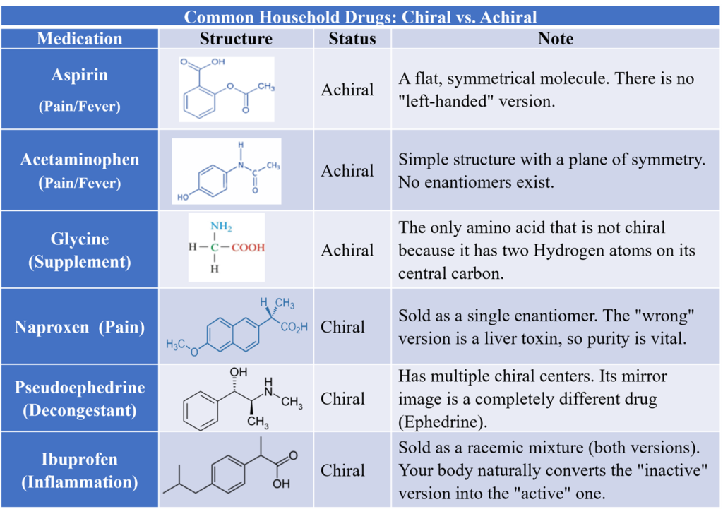 Common Household Drugs: Chiral vs. Achiral