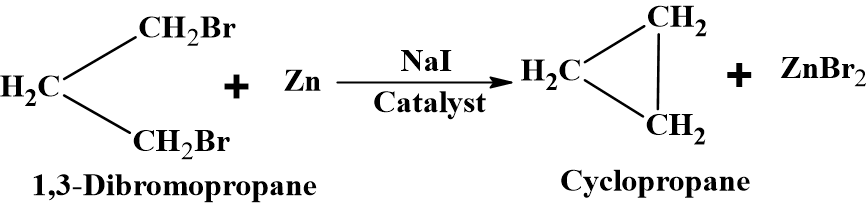 A dihalogen compound containing halogens on terminal positions, on treatment with Zn, in the presence of NaI catalysts gets dehalogenated. The terminal halogen atoms are removed thereby forming the ring. This method is an extension of Wurtz reaction. This reaction is useful for the synthesis of 3 to 6 membered rings.