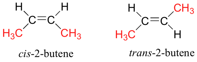 • Cis-2-butene: Identical Groups (the methyl groups) on the same side.