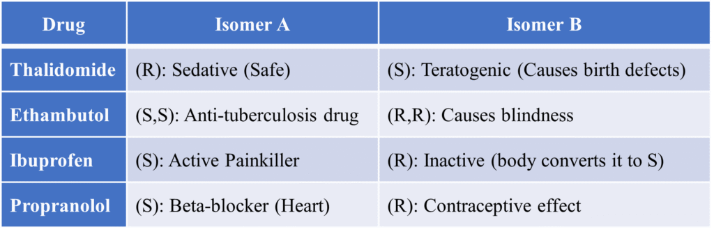 Stereochemistry is the ‘chemistry of space’. It deals with the spatial arrangements of atoms and groups in a molecule. Stereoisomerism is crucial to understand because the spatial arrangement of atoms can completely change a drug’s effect: one isomer might cure a disease, while its “mirror image” could be toxic. It is essential to know about stereoisomerism because the three-dimensional “shape” of a drug molecule often determines its biological activity, safety, and metabolism.