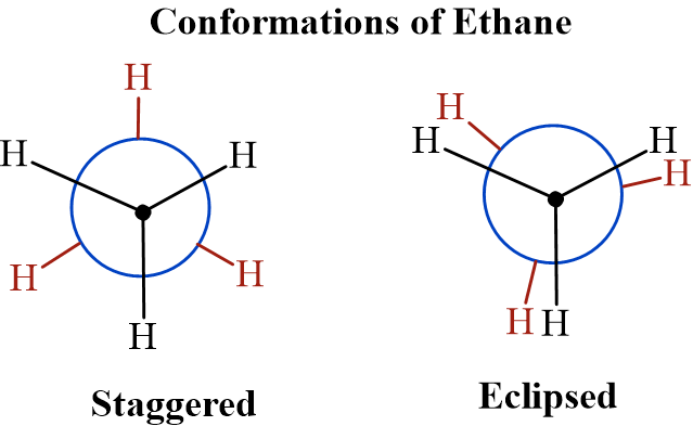 These isomers can be interconverted by rotation around a single bond (C-C) without breaking any bonds. They are usually interconvertible at room temperature and cannot be easily separated. Example: Conformations of Ethane (Staggered and Eclipsed).