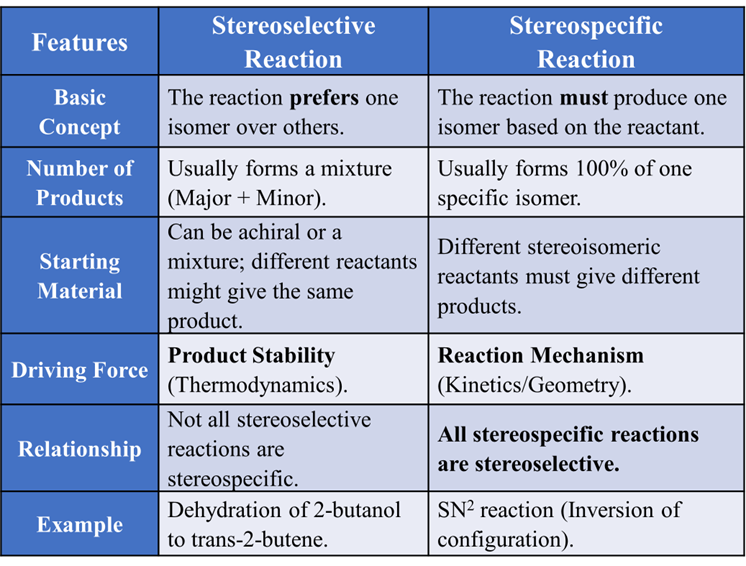 Difference between Stereoselective and Stereospecific reactions.
